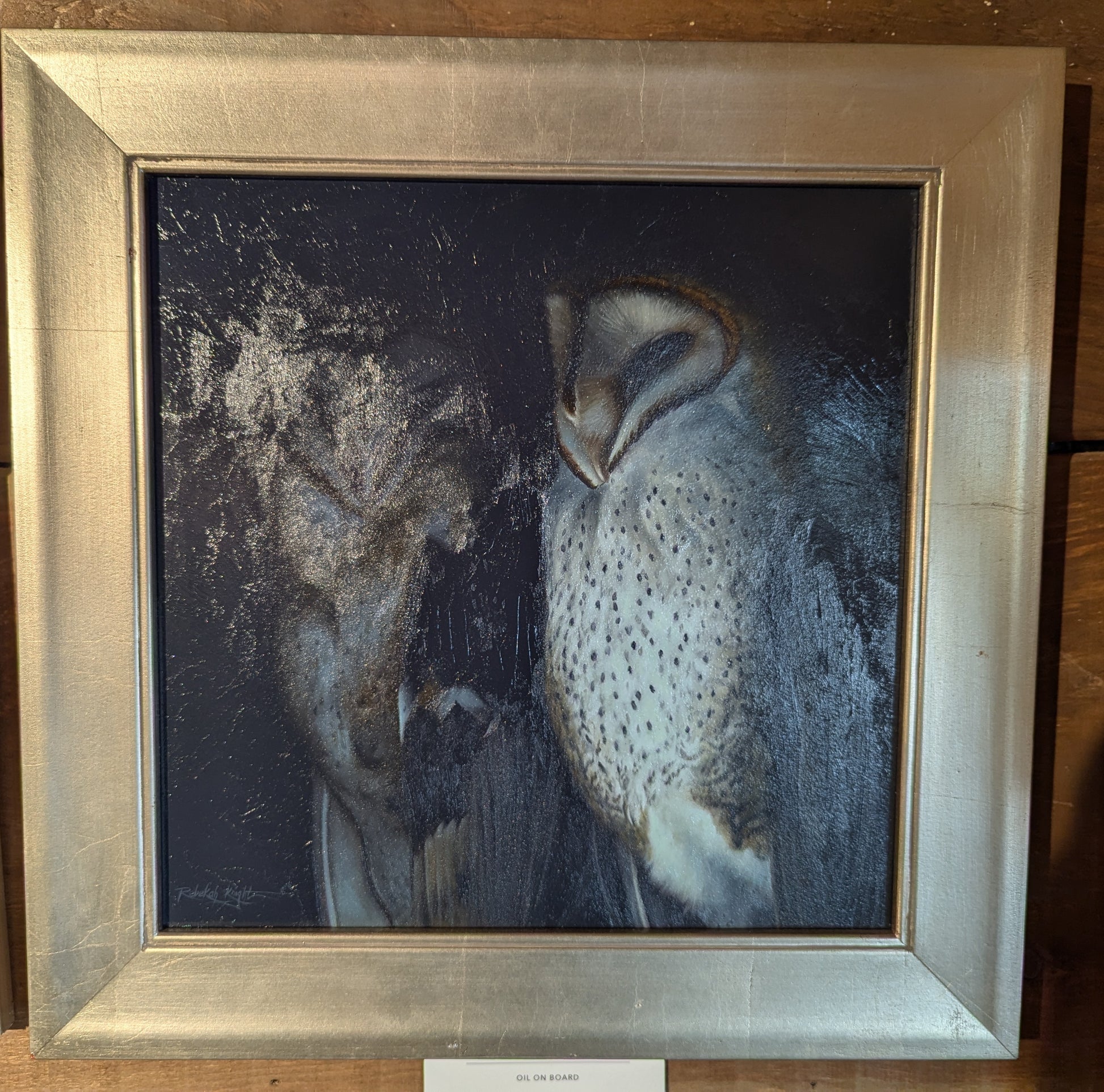 Quiet Darkness is an oil on board painting. Painted by Wildlife Artist Rebekah Knight. Framed size is 15.5 x 15.5.