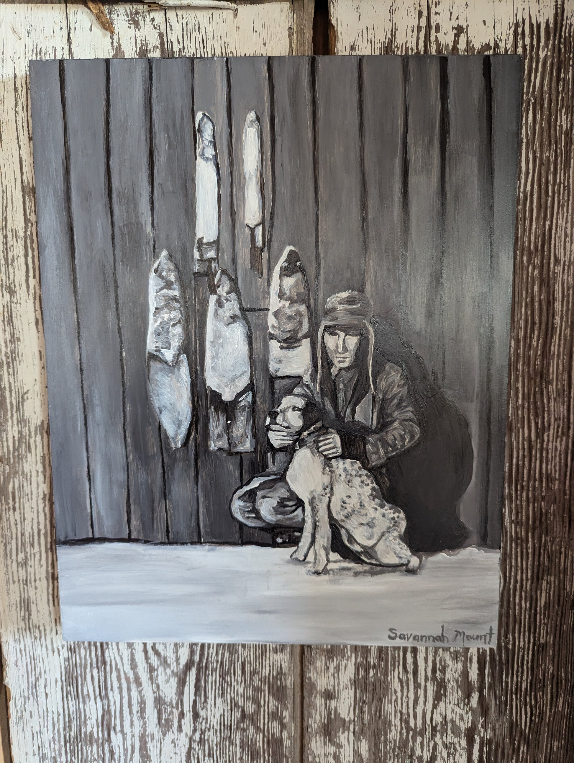 The Trapper is an acrylic on canvas. Painted by Wildlife Artist Savannah Mount. Painting size is 11 x 14.