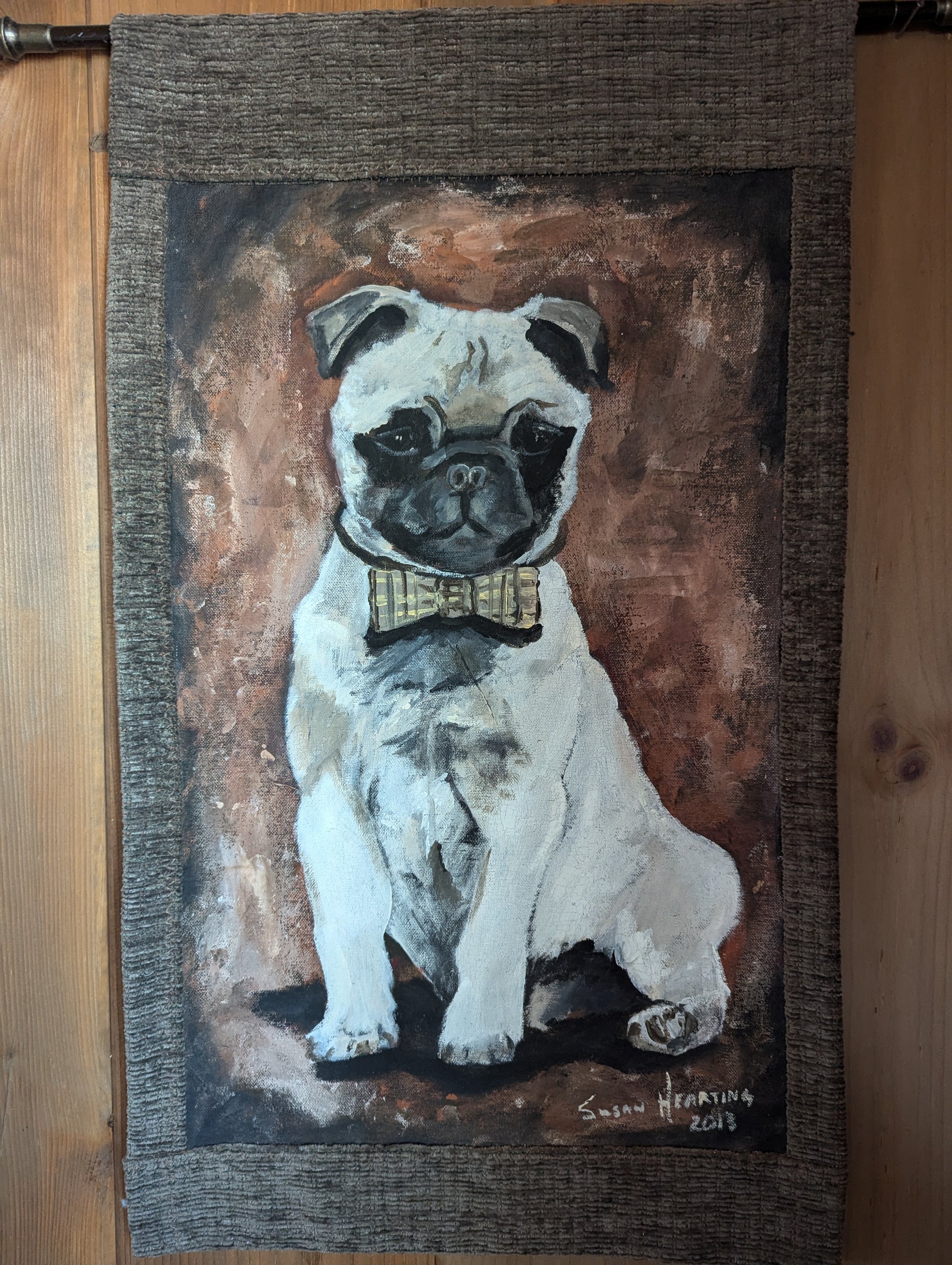 Wedding Dogs Character - Ring Bearer is oil on canvas framed in fabric. Painted by Wildlife Artist Susan Hearting.
