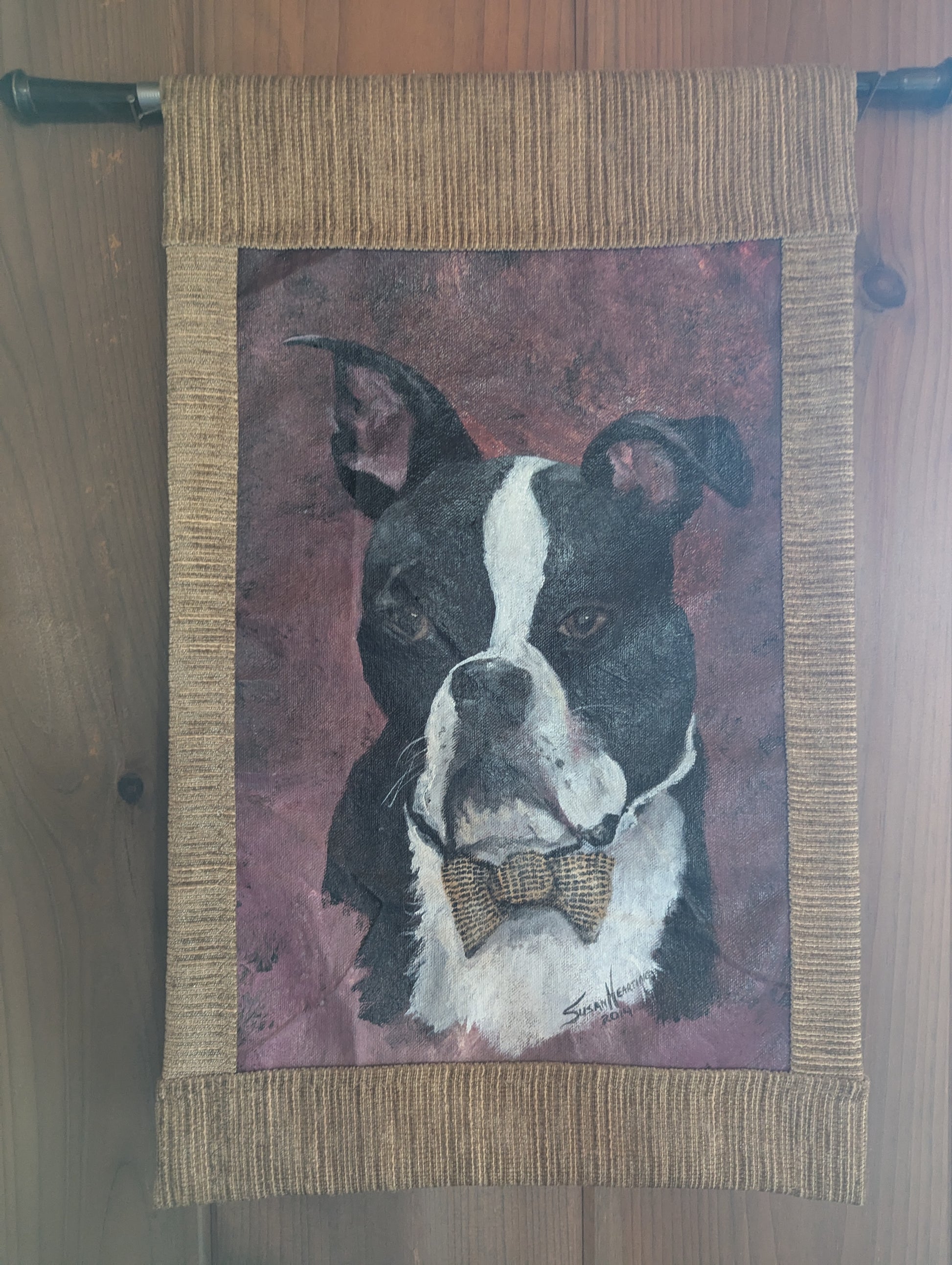 Wedding Dogs Character - Usher Dog is oil on canvas framed in fabric. Painted by Wildlife Artist Susan Hearting.
